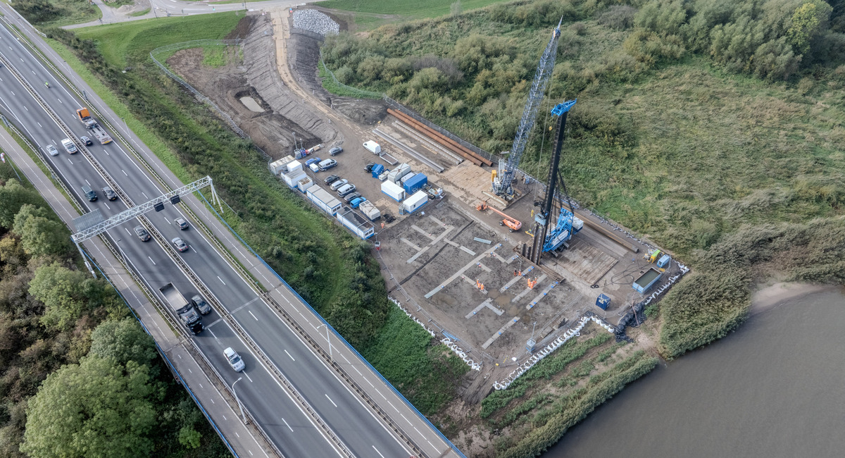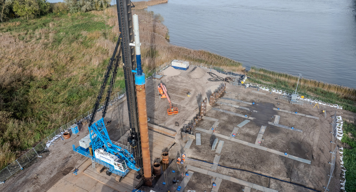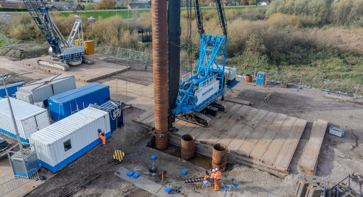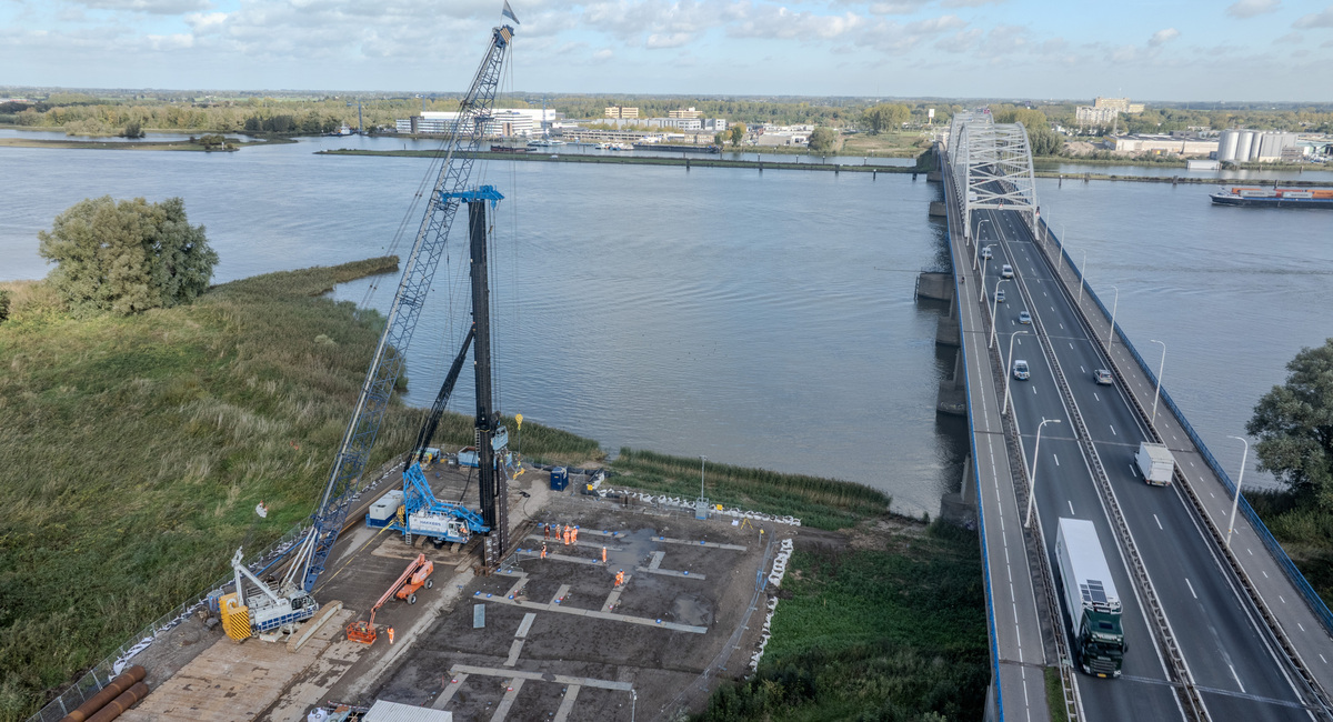 Bij de Merwedebrug aan de A27 voeren we proefwerkzaamheden uit met diverse funderingstechnieken. We trillen, duwen en heien damwanden en buispalen de grond in, terwijl vooraf geplaatste peilbuizen met slimme sensoren continu meten hoe de bodem reageert. Zo brengen we de bodem in kaart en zorgen we voor een veilige vernieuwing van de brug. Cruciaal om straks zorgvuldig in de directe nabijheid van de huidige brug te kunnen werken. Samen sterk voor een stevige toekomst!